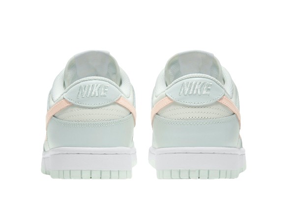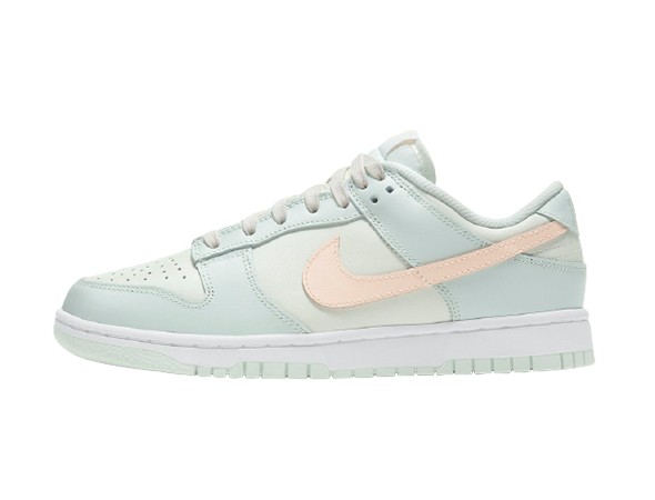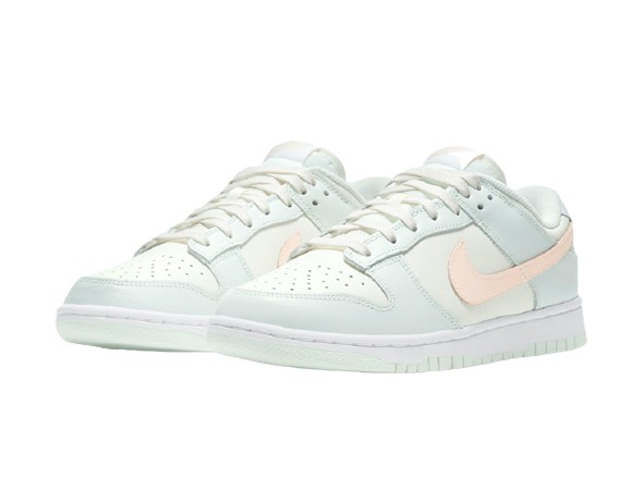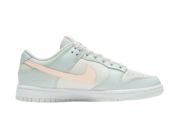 Details: This replica Nike Dunk Low WMNS "Barely Green" features a Sail leather base with Barely Green overlays and matching rubber outsole. Highlighting the shoe are Crimson Tint accents on the branded areas completed with a White midsole.