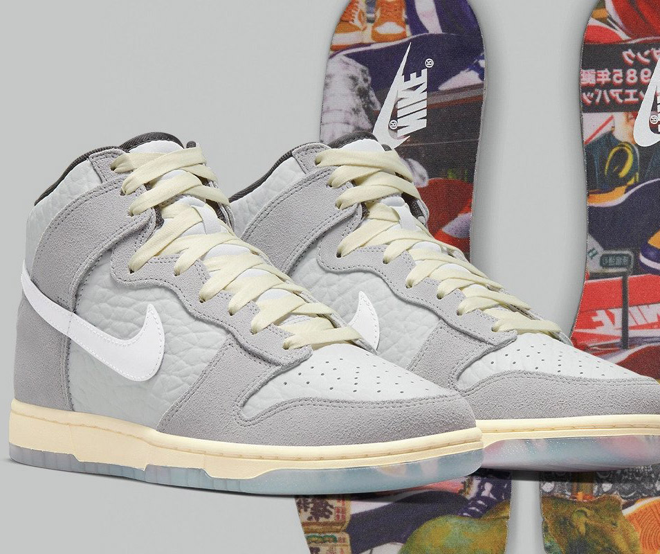 Details: This Nike Dunk constructed in a mix of tumbled leather with suede overlays and smooth leather on the Swooshes. Highlighting the shoe are its translucent outsoles and insoles.