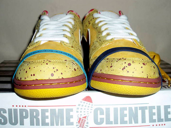 Details: The best replica Nike Dunk SB Low "Yellow Lobster" shoes feature a similar design to its red and blue predecessors, though this pair was extremely limited and never made it to retail. Instead, the shoe was distributed to friends and family, who received a low-top with varying shades of yellow on the upper, complete with a burnished brown leather Swoosh and speckled detailing on the overlays.